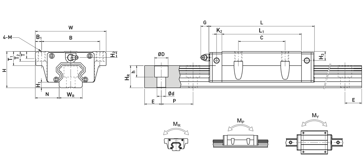 HG series linear guideways are designed with load capacity and rigidity higher than other similar products with circular-arc groove and structure optimization. It features equal load ratings in the radial, reverse radial and lateral directions, and self-aligning to absorb installation-error. Thus, HG series linear guideways can achieve a long life with high speed, high accuracy and smooth linear motion.