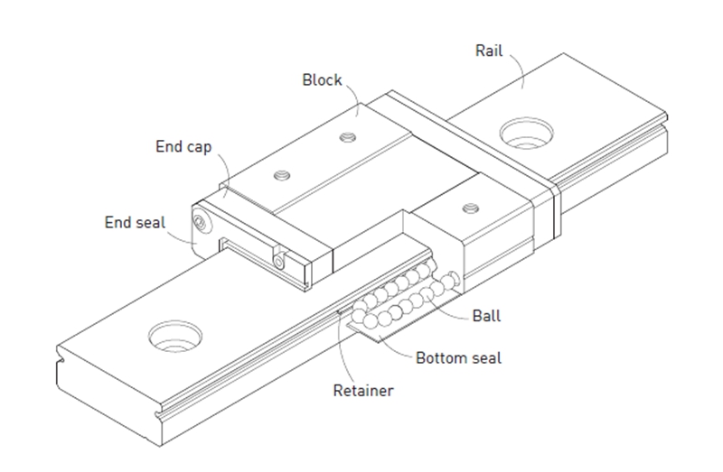 Steel balls will be held by miniature retainer to avoid the balls from falling out even when the block are removed from the rail installation.