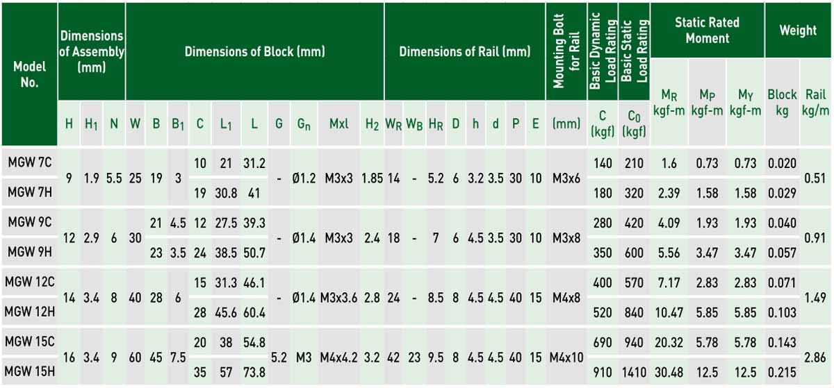 MGN/MGW series is available for various applications, such as semiconductor equipments, PCB /IC equipments, medication, robotics, measuring equipments, automation equipments, and other miniature sliding machinery.