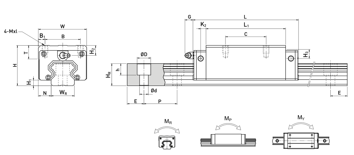 HG series linear guideways are designed with load capacity and rigidity higher than other similar products with circular-arc groove and structure optimization. It features equal load ratings in the radial, reverse radial and lateral directions, and self-aligning to absorb installation-error. Thus, HG series linear guideways can achieve a long life with high speed, high accuracy and smooth linear motion.